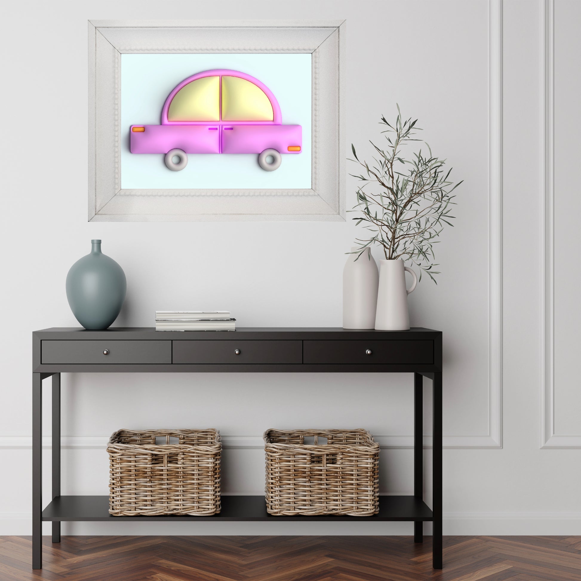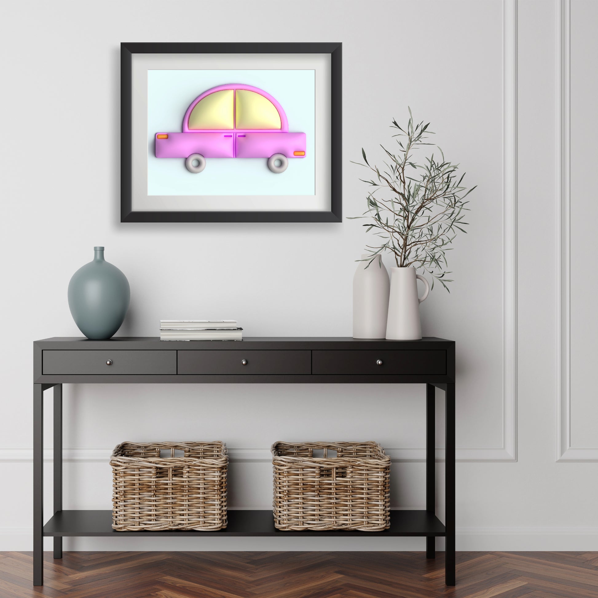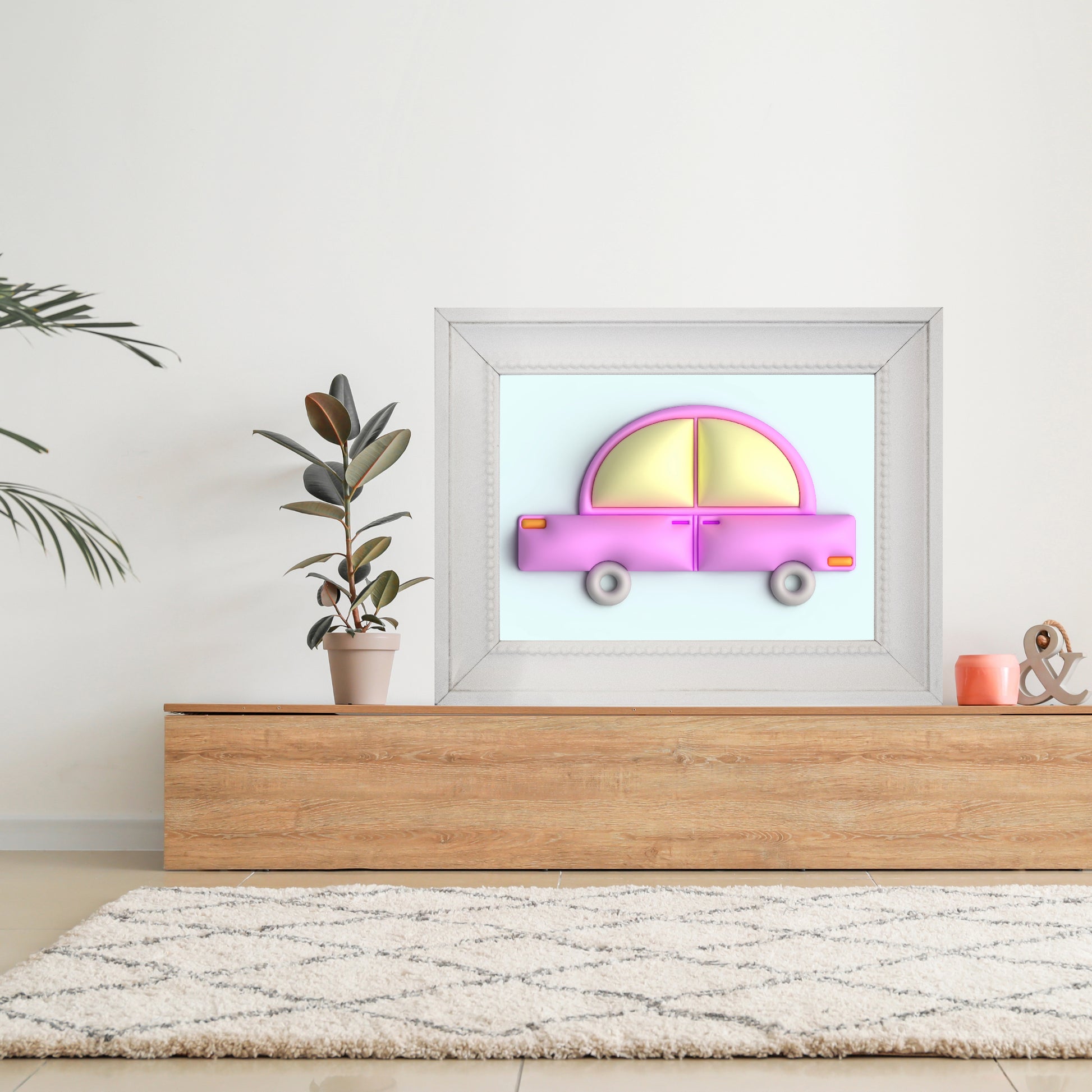 Keywords: prints, print, poster, posters, wall art, wall decor, art decor, wall art decor, art, digital art, designs, art sell, art for sale. Digital designs, illustrations, digital illustrations, 3D design, 3 dimensional design, 3D illustration. Car, pink car, blue, 3D illustration, illustration.