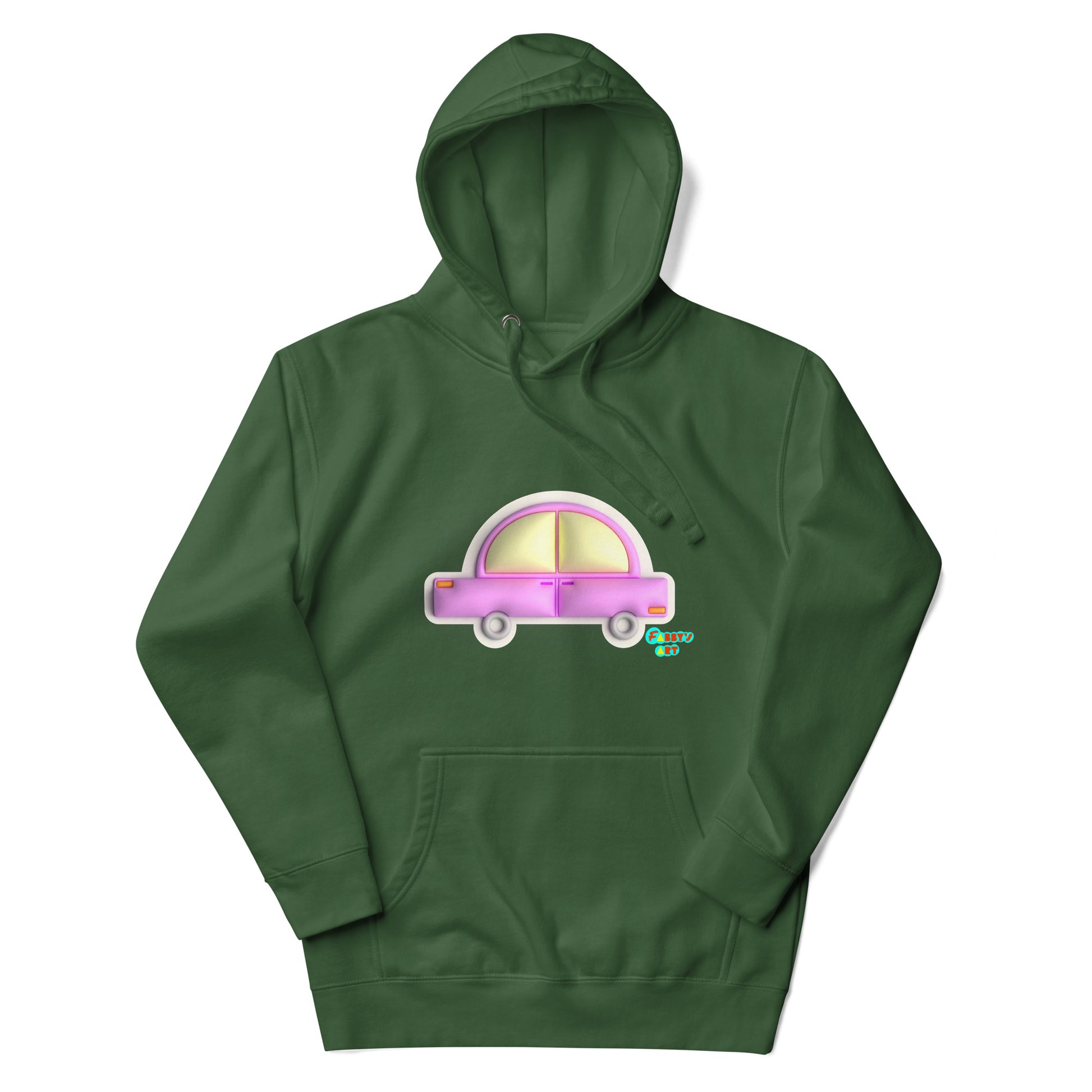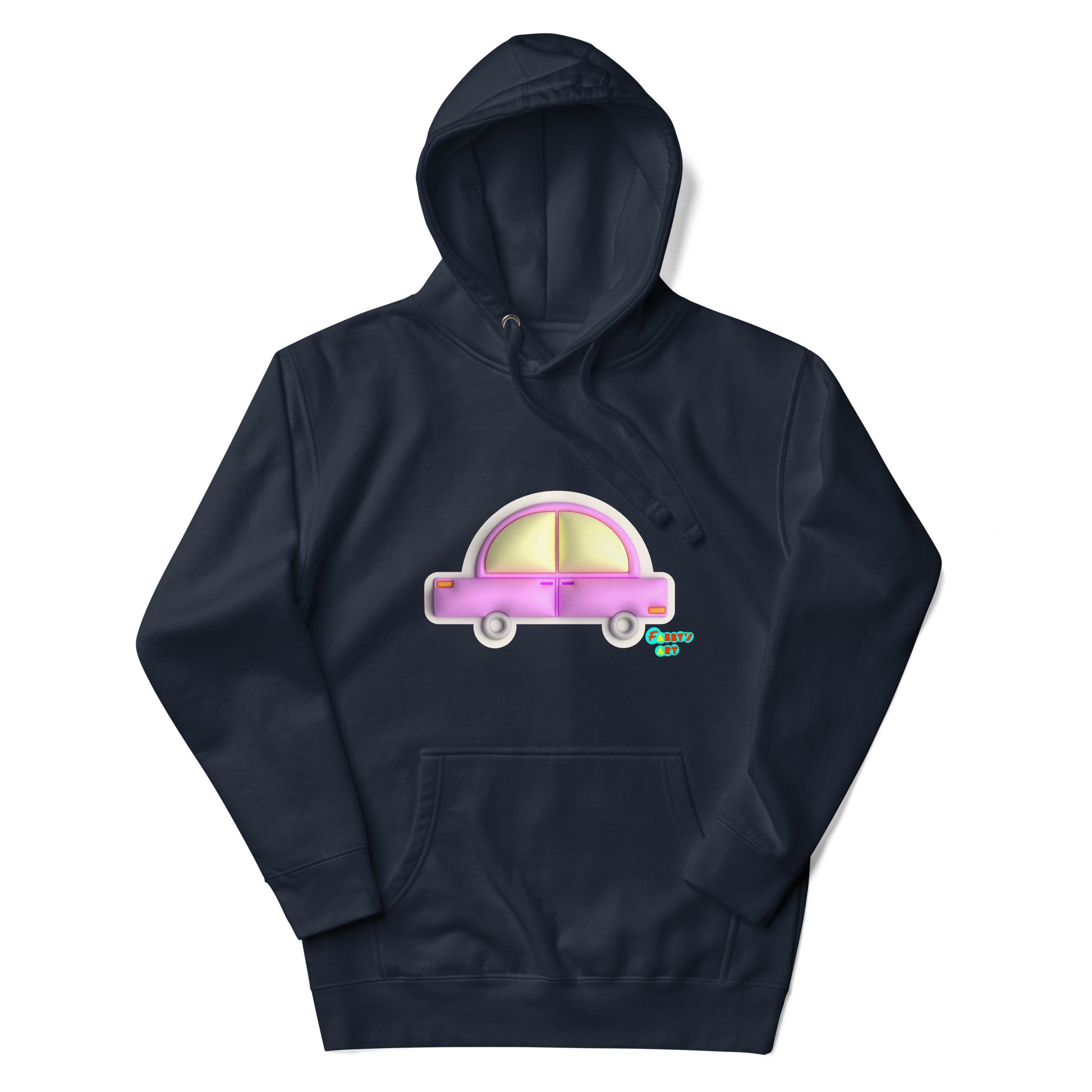 Pink car in yellow Unisex premium hoodie