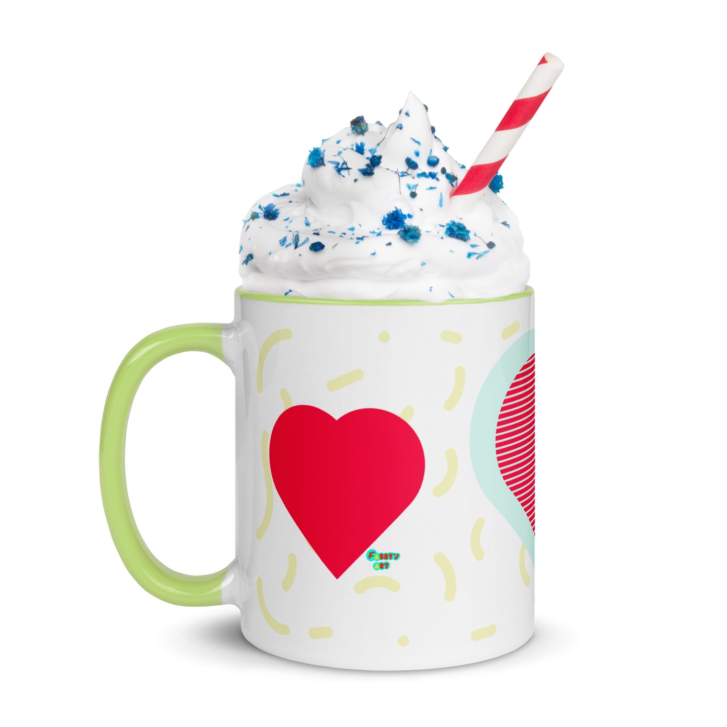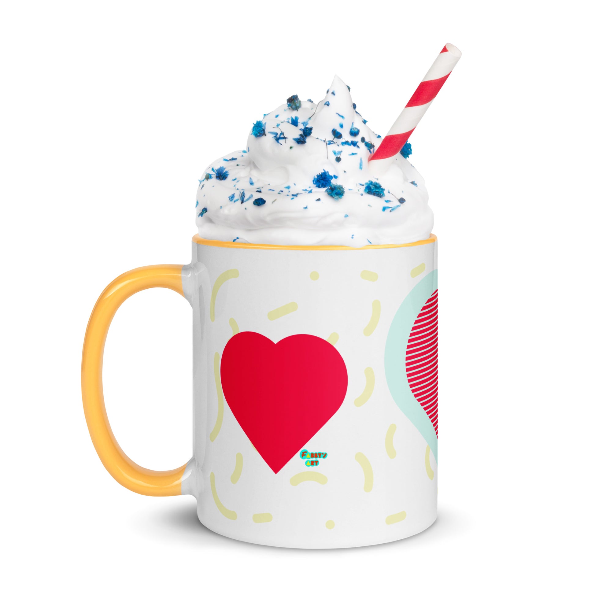 Add a splash of color to your morning coffee or tea ritual! These ceramic mugs not only have a beautiful design on them, but also a colorful rim, handle, and inside, so the mug is bound to spice up your mug rack.