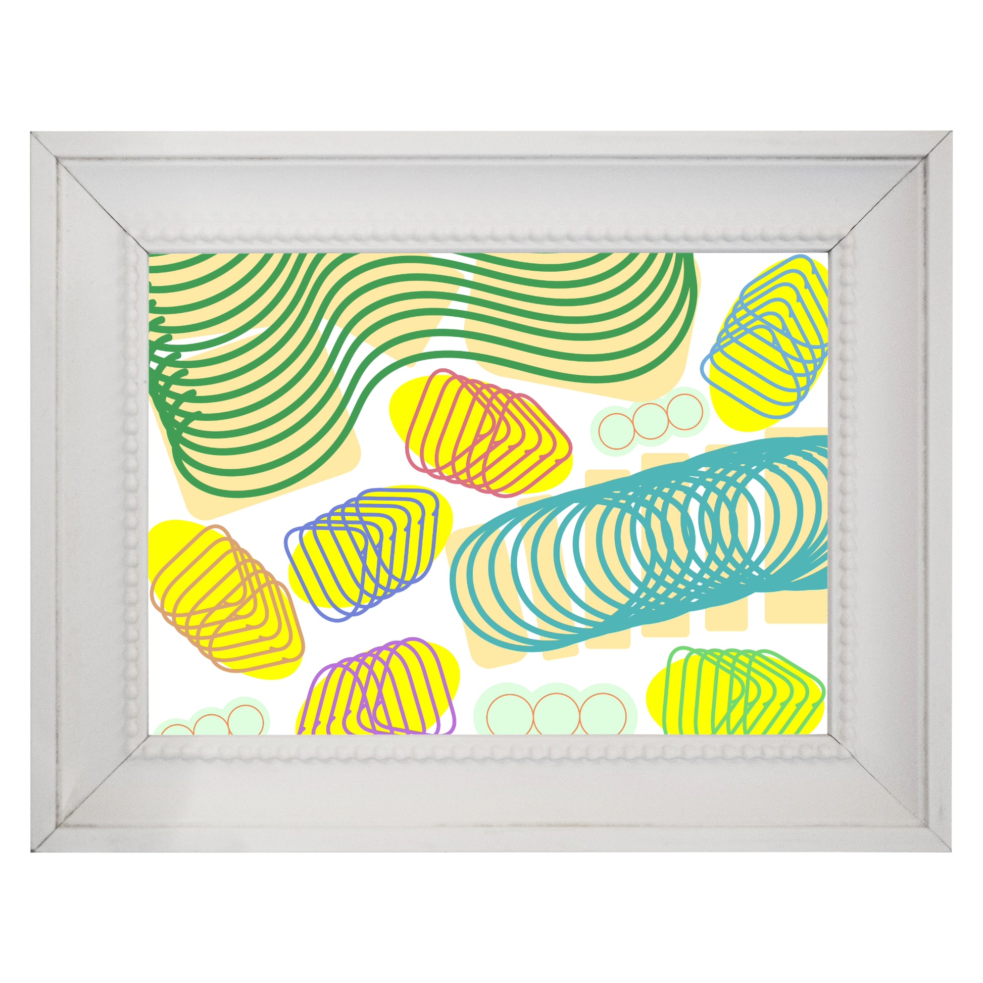 Product Description: Spiral green light color outlines shapes in different colors on top of other one color shapes, in a white background.