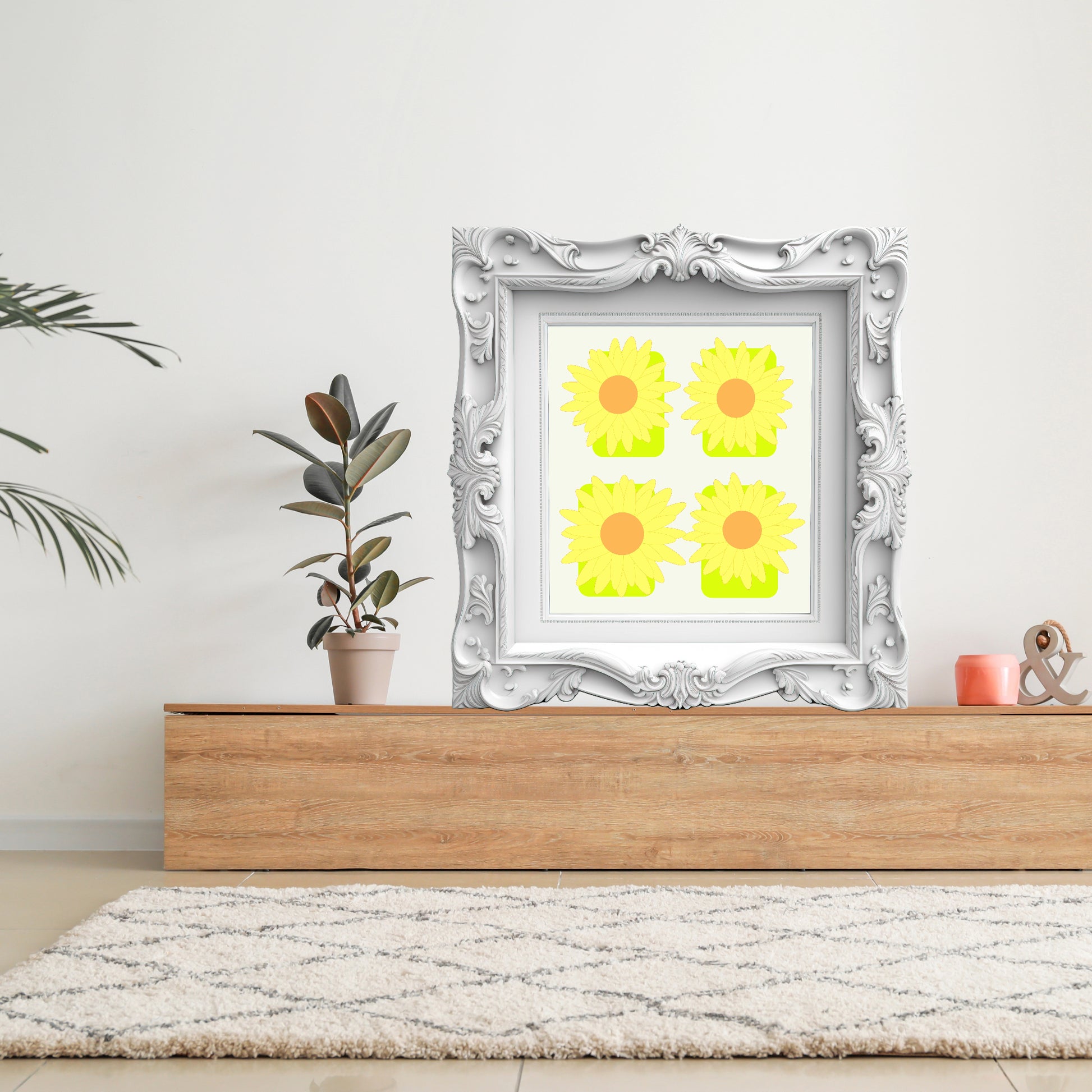 Keywords: prints, print, poster, posters, wall art, wall decor, art decor, wall art decor, art, digital art, designs, art sell, art for sale, digital designs, illustrations, digital illustrations, 2D design, 2 dimensional design, 2D illustration. Sunflower, flowers, yellow, squares.