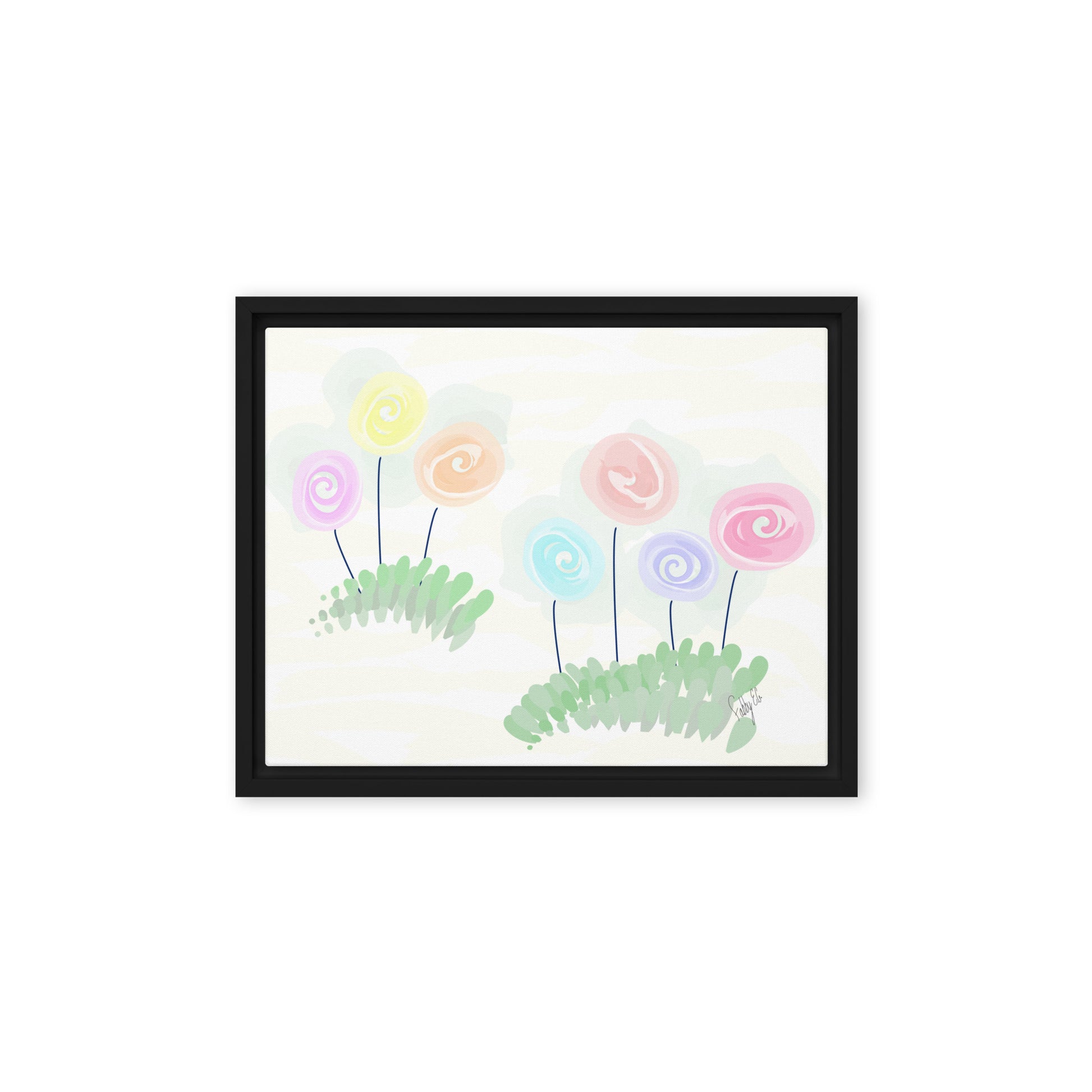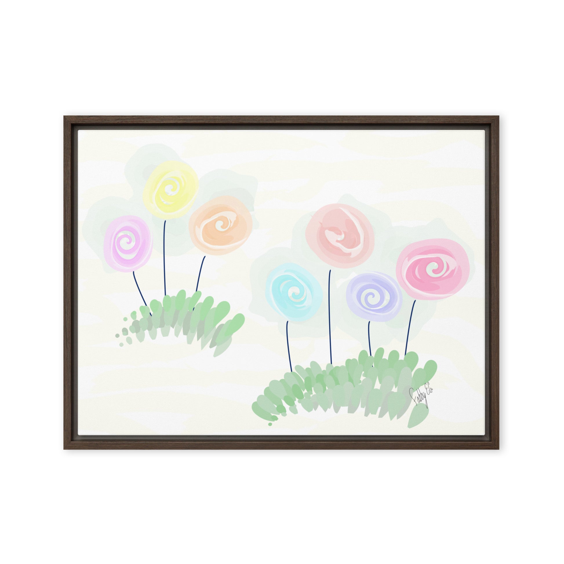 - The framed canvases with brown and black frames have a black inside around the canvas, and the canvases with white frames have a white inside around the canvas.